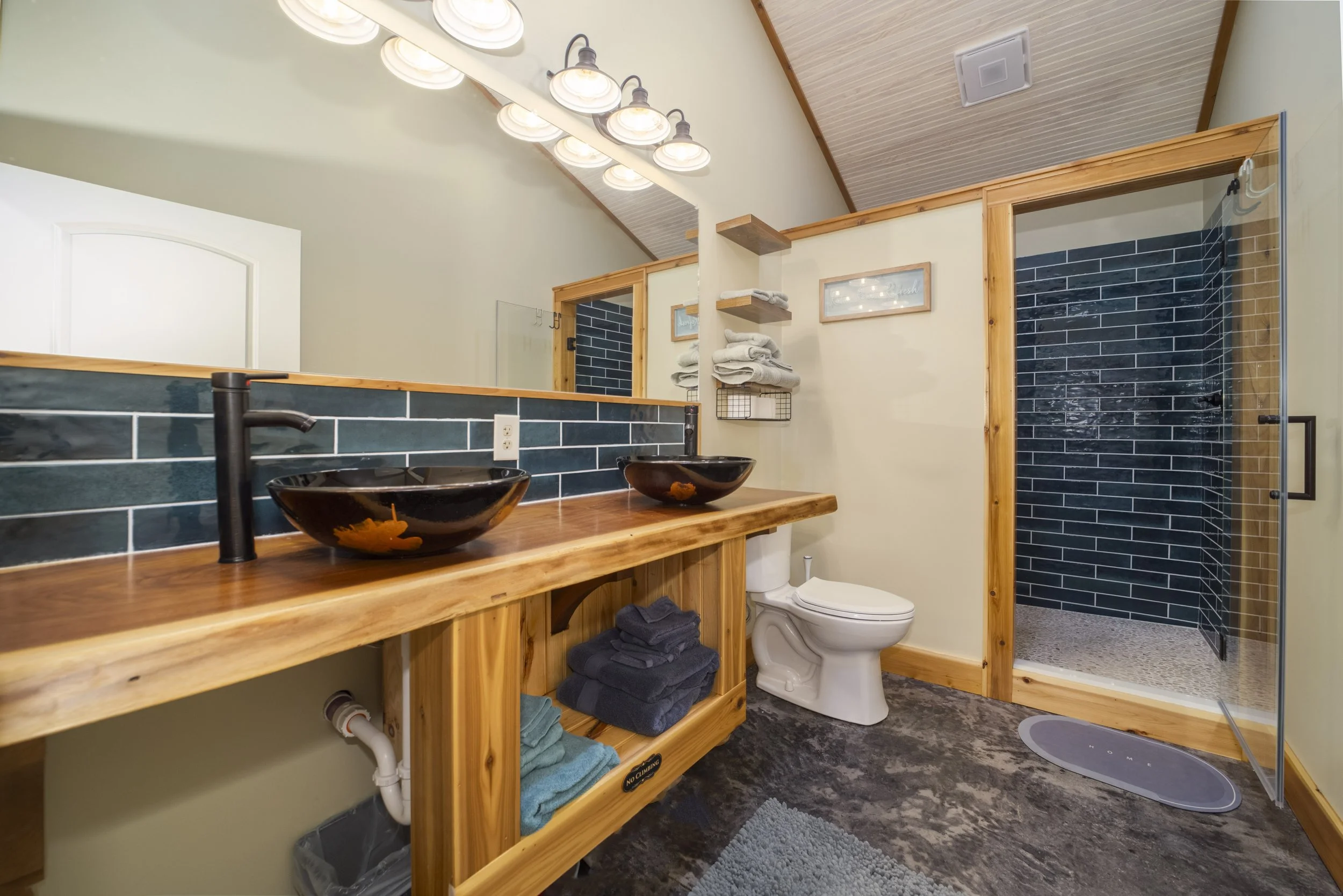 Please take out your trash and recycling to the containers in back of the cabin upon leaving and wash any dishes
