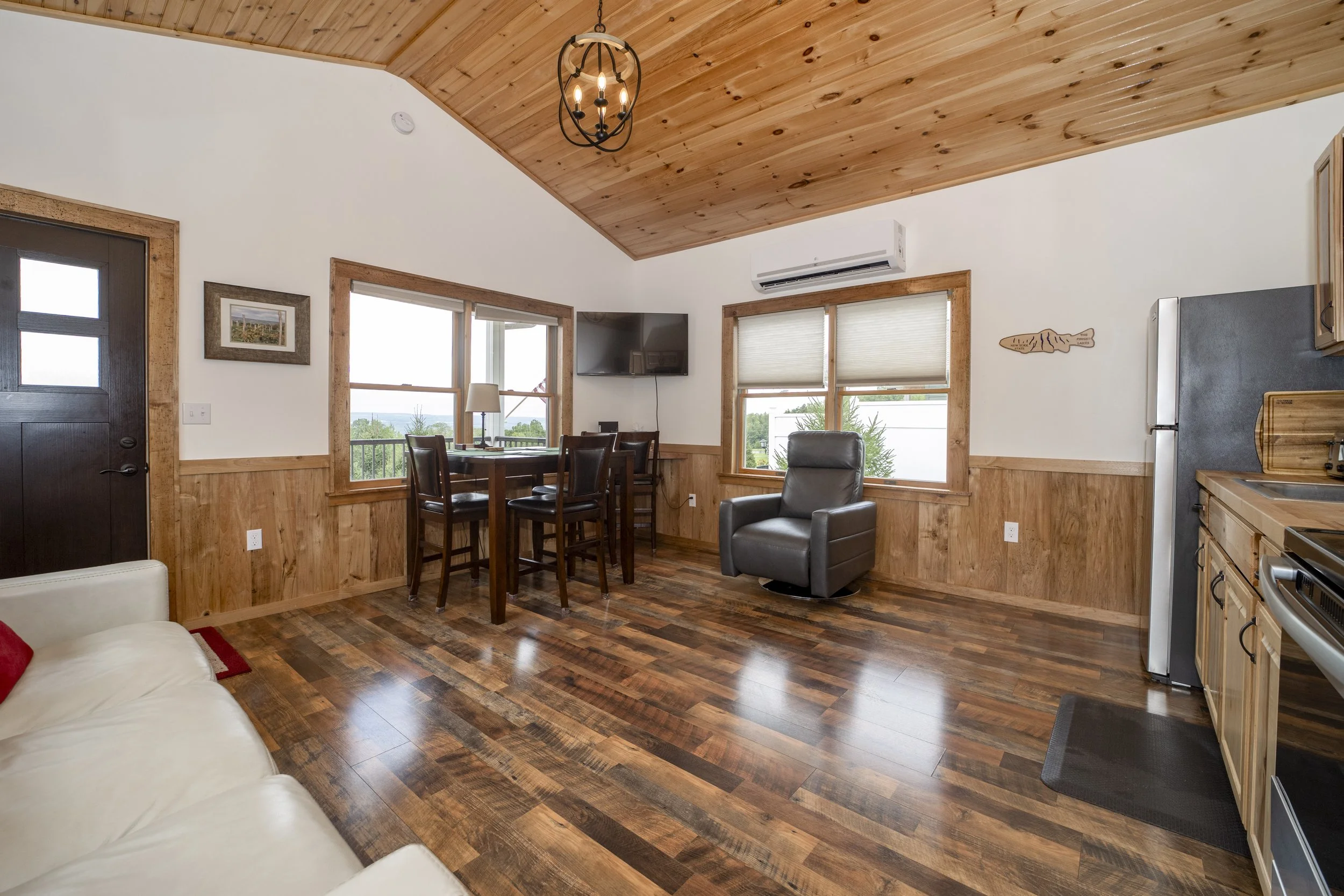 Please take out your trash and recycling to the containers in back of the cabin upon leaving and wash any dishes
